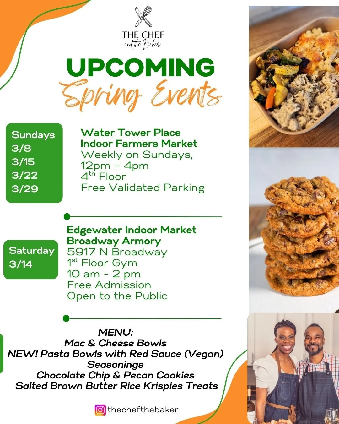 Find us every Sunday at the Water Tower Place Indoor Farmers Market — 4th Floor, 12pm–4pm through March 29th. Come try our signature mac & cheese bowls, fresh-baked cookies, and rosemary lemonade before you book us for your next event. Free validated parking. Just show up hungry!