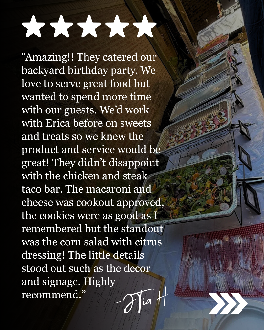Graduations. Birthday parties. Baby showers. Juneteenth celebrations. Game nights. Whatever the occasion — we create a custom menu and experience that fits your event perfectly. Drop-off or fully staffed.