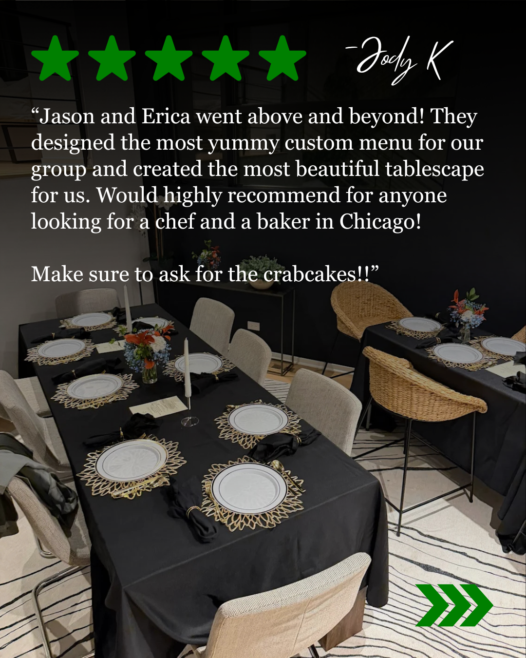 Hosting a dinner party in Chicago? Let us handle everything — menu planning, shopping, cooking, plating, and cleanup. You enjoy your guests. We handle the kitchen. Available for intimate gatherings to large celebrations.